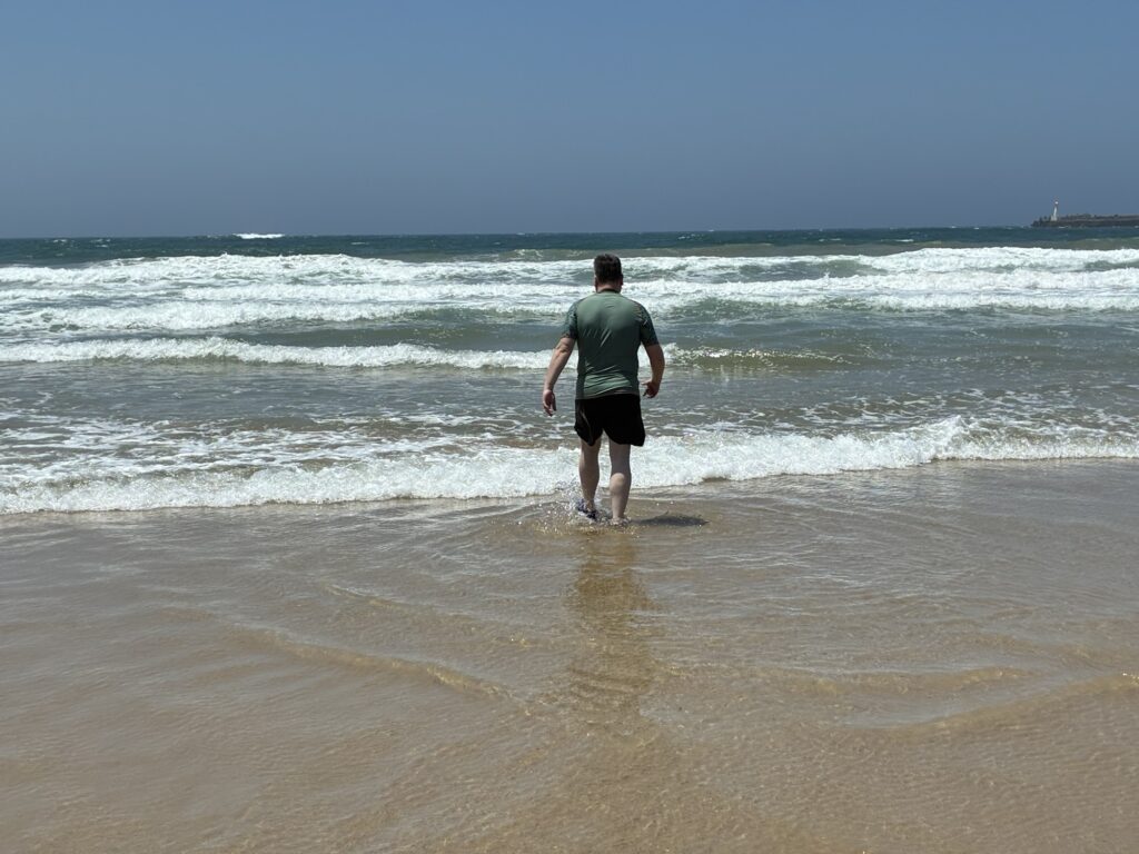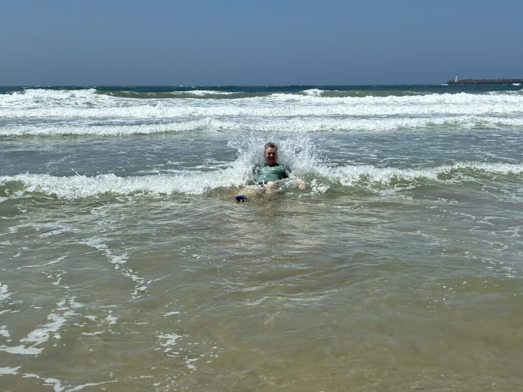 Das Wasser und die ordentlich hohen Wellen sind toll, so dass ich alle Sorgen schnell vergesse.